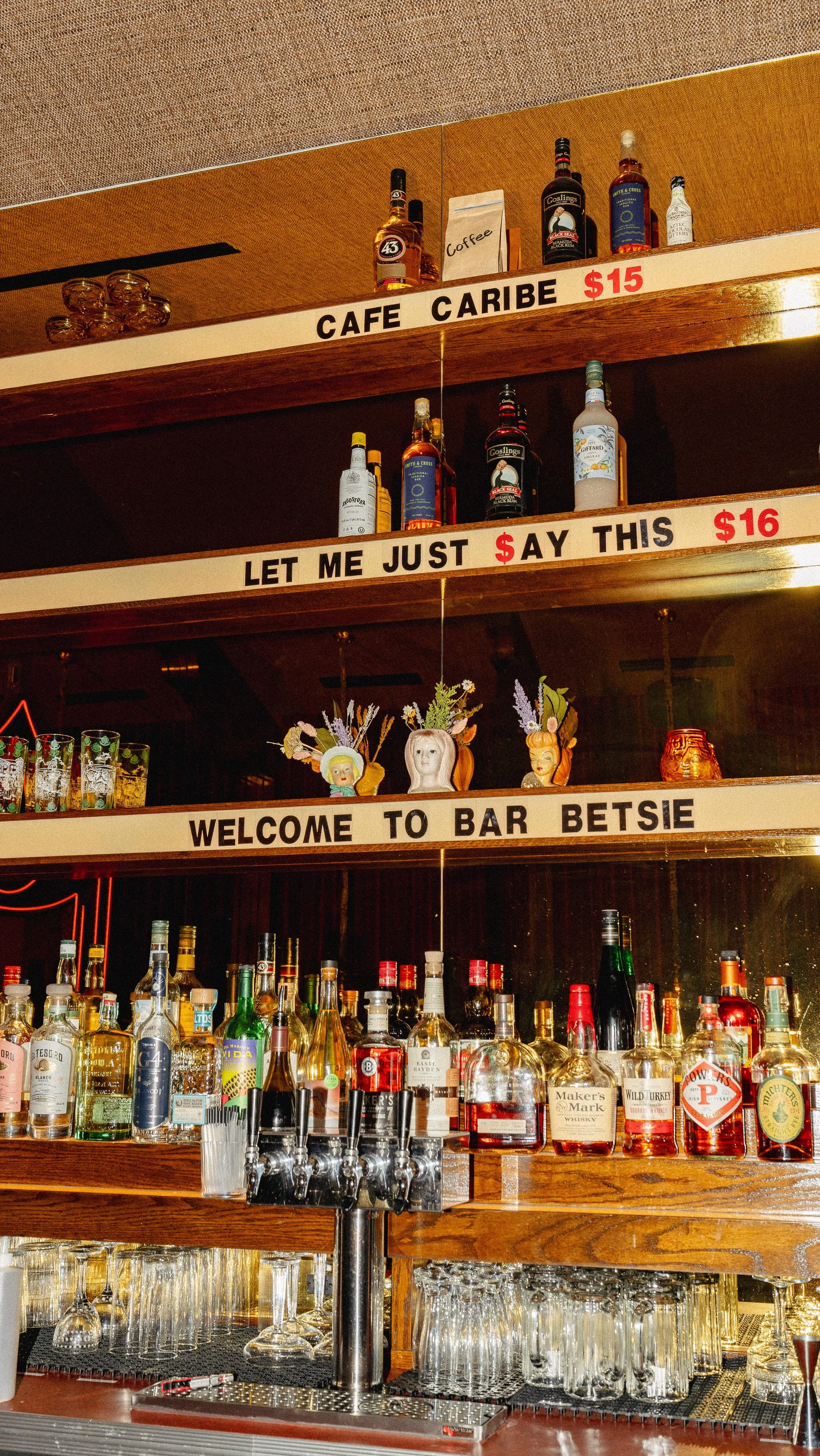 Bar Betsie is a craft cocktail bar dressed in neighborhood bar clothing. Serving inventive cocktails and tasty bar snacks, Bar Betsie is the perfect spot to drop in before or after dinner and to get lost in for an entire night! We do not accept reservations, and operate on a first come first serve basis. We canβt wait to see you soon!