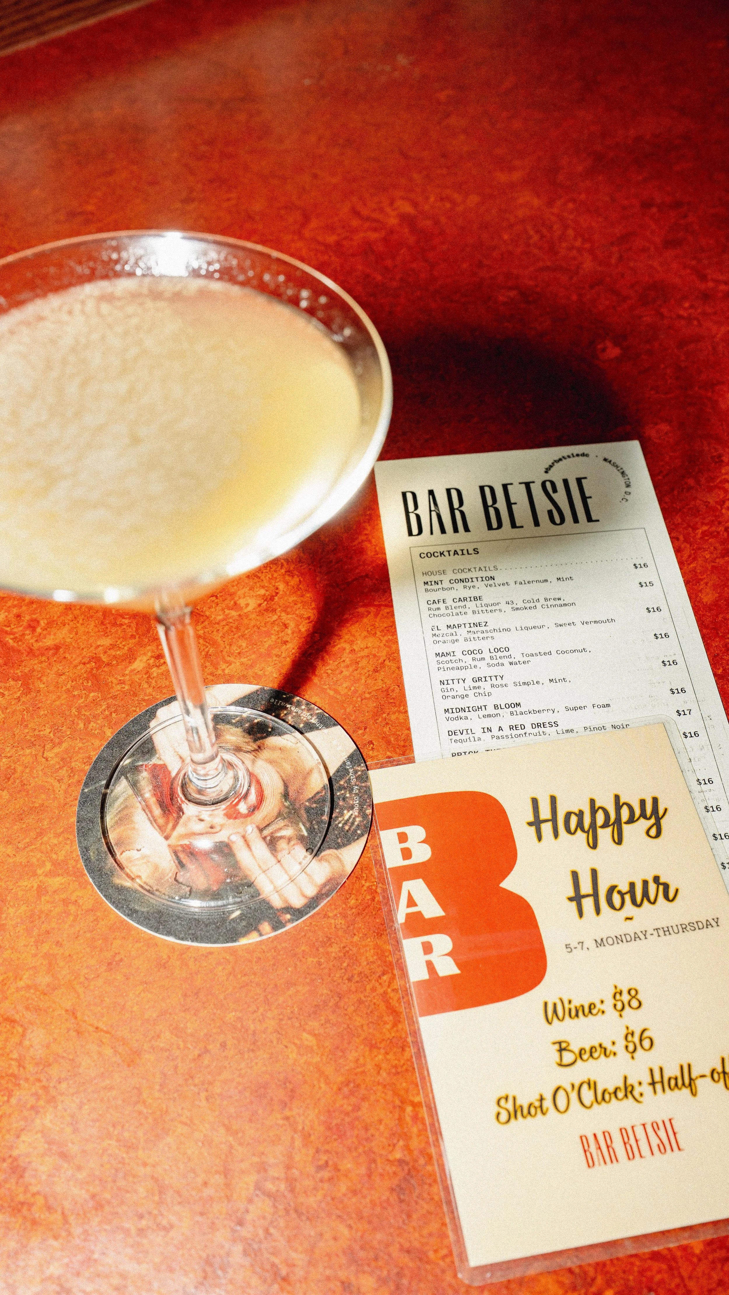 Bar Betsie is a craft cocktail bar dressed in neighborhood bar clothing. Serving inventive cocktails and tasty bar snacks, Bar Betsie is the perfect spot to drop in before or after dinner and to get lost in for an entire night! We do not accept reservations, and operate on a first come first serve basis. We canβt wait to see you soon!